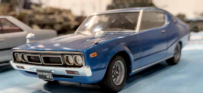 アオシマ1/24のケンメリGT-X。ケンとメリーのスカイラインの様にメタリックブルー仕上げとなっている。そういえばちゃーべんも積んでいるキットであるが、いつ作ろうか…?ホイールは何を使おうか?ノーマルも悪くないし、どうしよう?