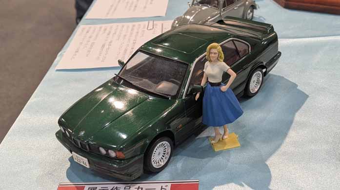フジミ1/24のアルピナB10-3.5/1。5シリーズをファインチューニングした一台。リアのスポイラーも何やらポテンシャルを物語っているかのようだ。ちゃーべんにとっては平成初期を思い出させてくれるクルマ。