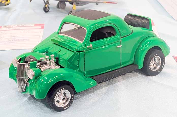 モノグラムの1/24の1936年式フォードのホットロッド。ボディ色はクレオス#C175蛍光グリーンで塗装し、ホイールはアオシマのホットロッドのものを、マフラーやバケットシートはストックから高年式の物を選んで取り付けた。蛍光色には専用のクリアーをわざわざ別に買って塗装しなければならなかったのはビックリした。