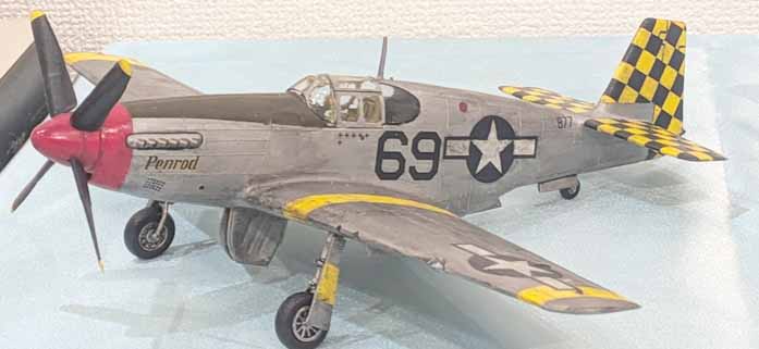 同じくテーマに因んだモノグラム1/48のP-51B。塗装は地中海戦線で活躍した318FS/325FG所属のRoy.B.Hogg少佐の「Penrod」で、凸モールド故チェッカーはマスキングテープをモールドに念入りに馴染ませる必要があったものの、無事破綻も無くキマった。D型が主力の頃になると胴体のアンテナ部分までチェッカーに彩られるようになるが、もし作るとなったら無事塗装を成功できるだろうか?P-51マスタングの有名どころのコレクションをするのもなかなかハードルが高い、、、