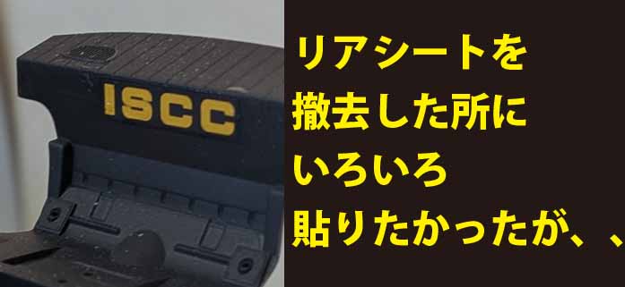 車内はリアシートが無くなって殺風景になってしまうが、デカールでワンポイントを入れたい。走りの改造がされたクルマにはシートを取っ払った跡にコニのショックのステッカーやらトラストのタコ足のステッカーやら賑やかなことになっている個体もあるが、何分今回はゼッケンの他にその手のデカールが揃っていなかったのでこの中からIMSCのデカールのみを使うことにした。イマイチ地味な印象になってしまうが、ロールバー以外は何にもないよりはイイ。チューンアップのパーツのブランドのデカールも揃っていれば、どんなチューンを施したのかワクワクするのだが…。