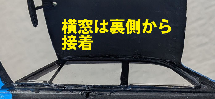 一方ボディはサイドウィンドウをボディに木工用ボンドで接着する。まずは上下をマスキングテープで固定して左右を、次の日に左右を接着するという段取りである。この窓のパーツ割はレベル(ユニオン)の1/25ダットサン510にも似たパーツ割であるが、サイドだけ内側から接着するのはちゃーべんには疑問であった。510の場合は全てのウインドウを外から付ける構造になっていたが、サイドが内側からというのは接着の際ハミ出た木工用ボンドの切り取りが多少やりにくくなってしまうのである。外側からならそうした作業も楽だと思うのだが…。いや、でもウインドウが一体成型だと内側のピラーに隠れてしまう所を黒くしておかないと反射してしまうので黒く塗る手間があることを思えばこちらの方が良いのだろうか?