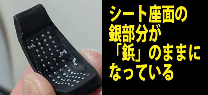 ハセガワベレットGT-Rの外装部品の色付けをほぼ終えたちゃーべんは、内装の部品の細々とした塗装に手を付けた。前回申し上げた通り座席はAMTの1966年式フォードマスタングのバケットシートを流用する予定で、ハト目のモールドも武骨なパーツである。キットにはシート用のハト目のデカールも付属していたが、ちゃーべんはモールドの一個一個をハト目に塗装する事にした。コンマ何㎜のモールドを一つづつ文字通りハト目に塗っていく作業であるから、終わるまで相当長い事かかるのは必至。ひとたび咳やクシャミをしたら盛大にハミ出て惨事になることは避けられない?