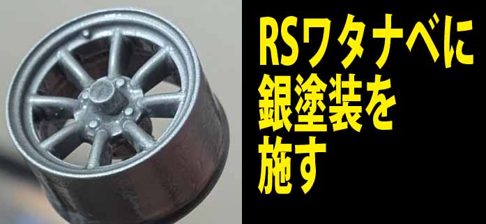 ここで装着予定のフジミのホイールを銀で塗装する。隠蔽力が強い色ではあるが塗り残しの部分が無きよう少しずつ塗膜を重ねて形成していく感じでエアブラシで塗り重ねる。下地にサーフェイサーを吹いたのでモールドが埋もれてしまわないか心配であったが、3回吹き付けをして塗り残しがなくなるようなペースで行ったのでどうにか上手くいった。最後の色付けとしてセンターキャップの上部を黒く塗って色付け終了の予定。後はクリアーを吹いてタイヤを装着すれば足回り部品の完成となるのだが、この状態を見てますます完成が待ち遠しくなってしまった。